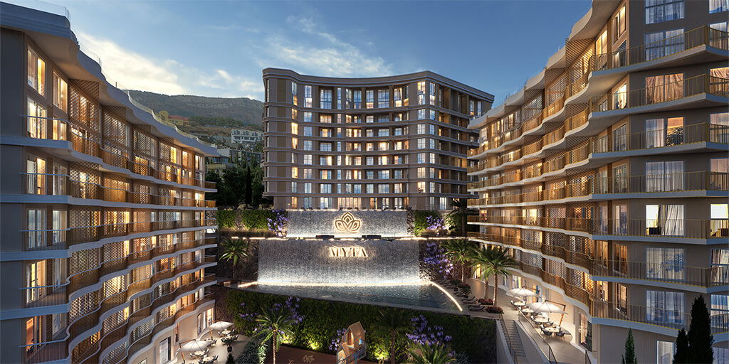 Территория комплекса «Майта» тщательно спланирована и обустроена с особым вниманием к деталям. Внутренний двор оформлен в стиле авторского ландшафтного дизайна с ухоженными зелеными насаждениями и уютными зонами для отдыха. Центром притяжения является искусственный водопад, создающий атмосферу уединенности и гармонии с природой.